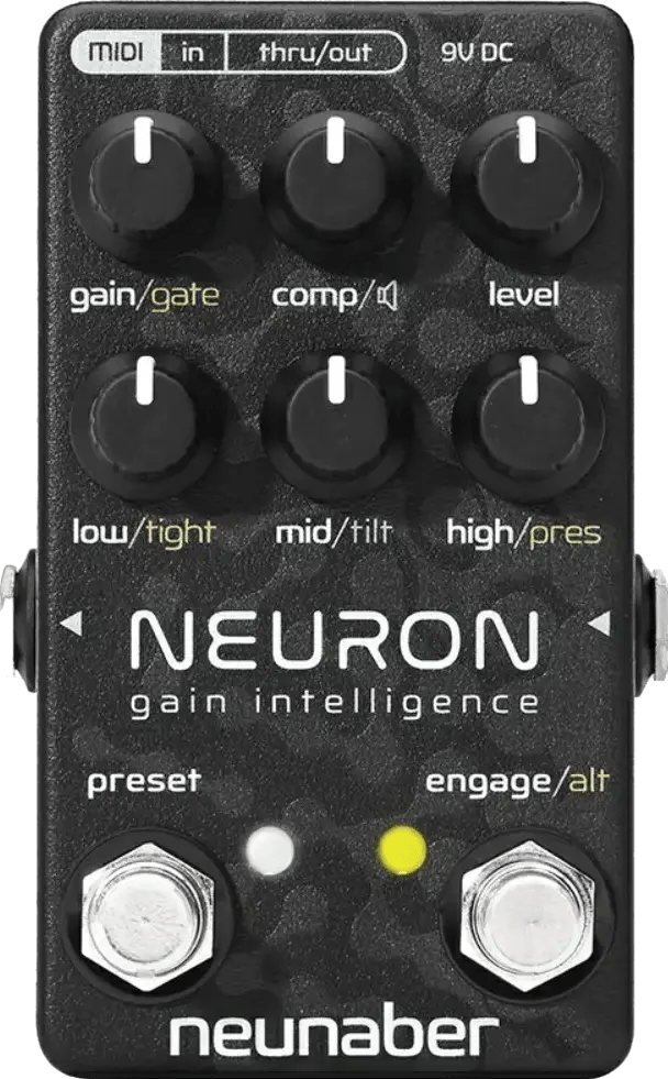 The Neunaber Neuron Gain Intelligence is a dynamic multistage guitar preamp pedal designed to provide a wide range of tones and responsive feel in a compact format. This preamp effects pedal incorporates an onboard compressor, noise gate, and speaker simulator, enabling versatile voicing and noise management for direct or amplified setups. The Neuron also features preset storage and MIDI input for external control and automation. Designed with portability in mind, the unit delivers amplifier-like response and allows for easy tone shaping without the need for high volume.
