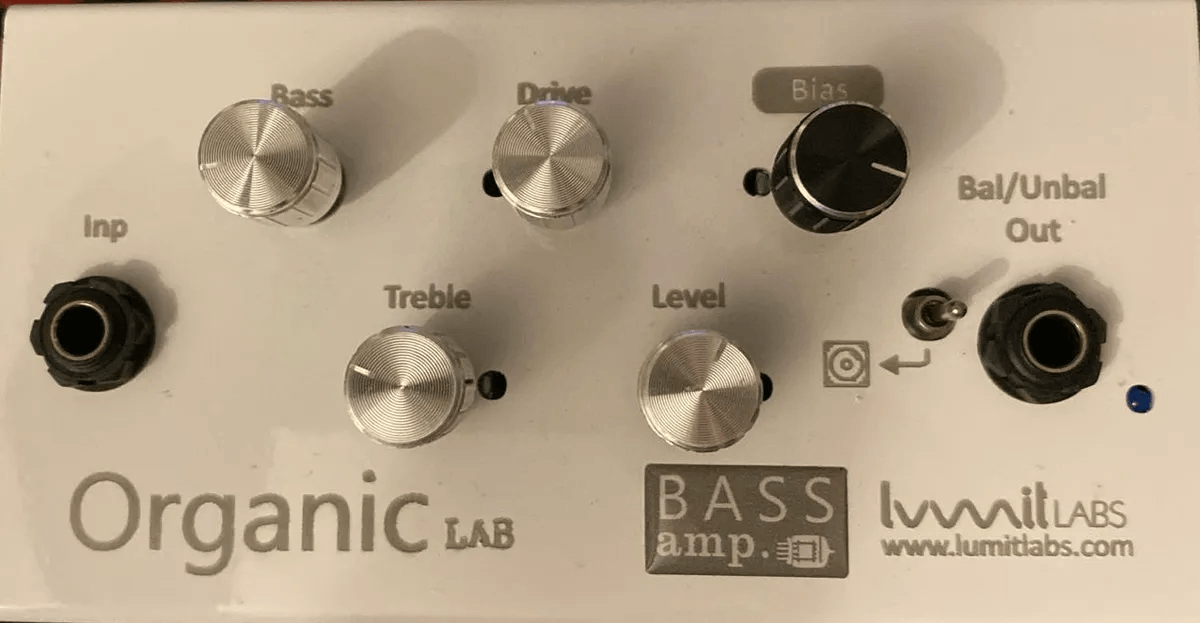 The Organic Lab BASS is a tube preamp and zero-watt amplifier designed for electric bass, inspired by classic Fender® Bassman preamp circuits. This bass preamplifier utilizes a 12AX7 tube operating at real high voltages found in traditional amplifiers. It features a BIAS control, allowing musicians to adjust the voltage from 220VDC to 320VDC, which changes the triode working point. This control lets users modify the tonal response, from clean, linear tones to more compressed and saturated valve drive, offering a variety of tube-driven textures, including mild organic overdrive that reacts to playing dynamics.
