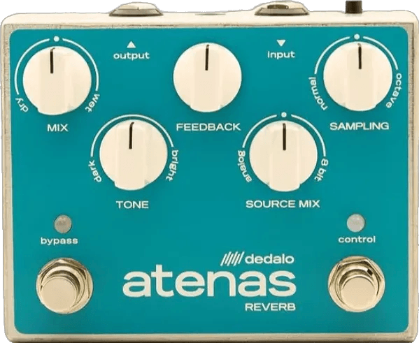 The Dedalo Fx Atenas is a reverb effects pedal designed to generate both classic spring-inspired reverberation and creative, lo-fi textures. This pedal uses a “spring heart” circuit to produce authentic spring reverb sounds, while a unique 8-bit processing mode introduces reduced-fidelity effects, octave artifacts, and drone textures. An integrated feedback control expands the sonic palette, allowing for modulated or continuous reverb layers. Freeze modes provide ongoing ambient drones, and all settings are adjustable via straightforward onboard controls. The Atenas reverb pedal combines standard and experimental reverberation options for flexible sound design.