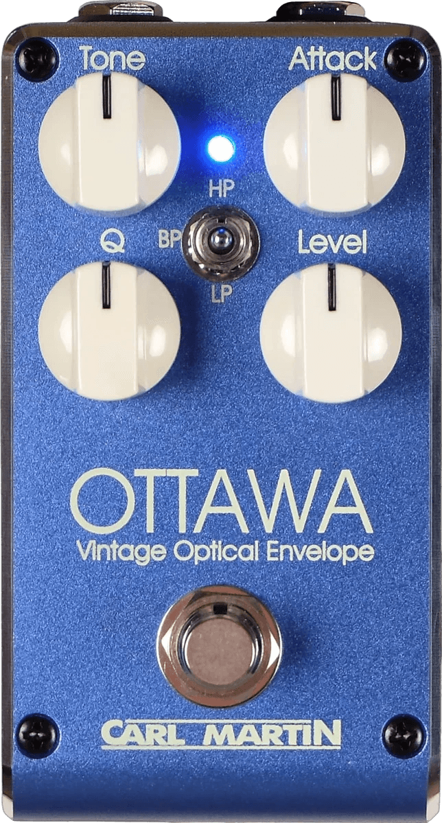 The Carl Martin Ottawa is an envelope filter effects pedal designed to produce dynamic wah-like filter sweeps based on your playing dynamics. This pedal features selectable high pass, band pass, and low pass filter presets, allowing users to shape their sound with a range of classic filter effects. Onboard controls include bandwidth, attack, level, and tone adjustments, offering flexible filter response and tonal shaping.