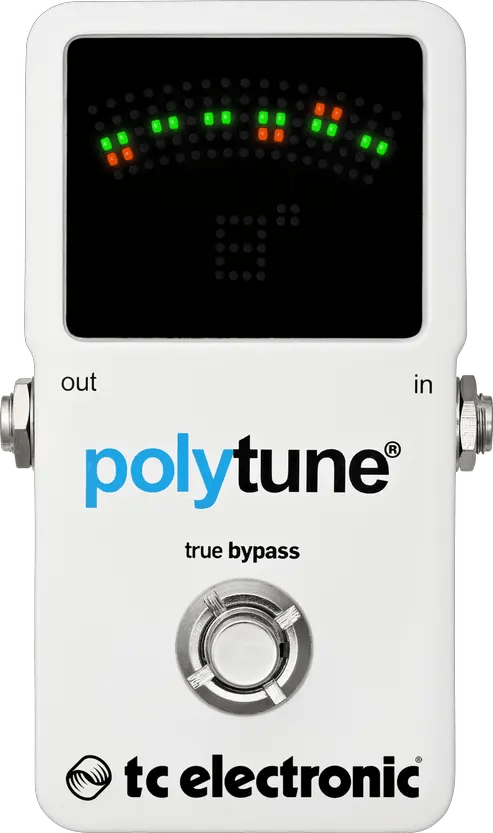 - Polyphonic and chromatic tuner pedal with strobe mode