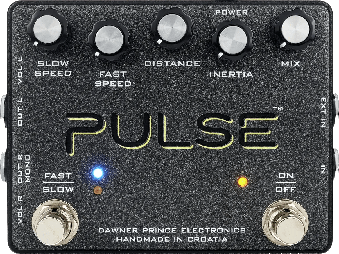 The Pulse™ is a rotary speaker emulator effects pedal designed to reproduce the sound and movement of open cabinet revolving speakers such as the Doppola and the Gibson® Maestro Rover RO-1. This modulation pedal uses detailed physical modeling and signal processing to capture the three-dimensional motion, spatial modulation, and sonic character associated with vintage rotary cabinets.