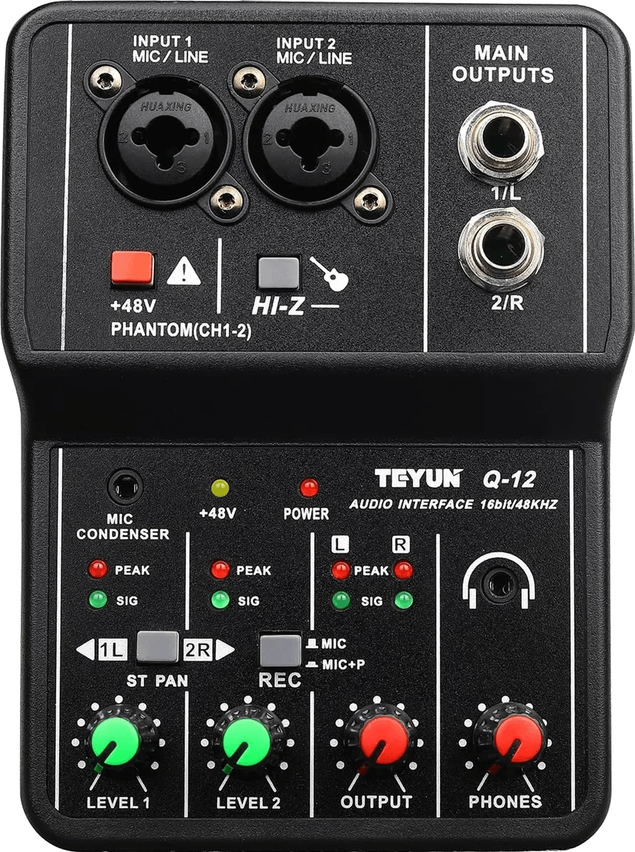 - Multiple input options including microphones and line-level sources