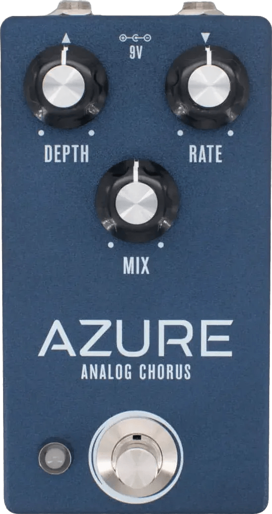 The Aion FX Azure Analog Chorus is a chorus effects pedal designed to deliver classic analog modulation, inspired by the BOSS CE-2 circuit from 1979. This analog chorus pedal provides modulation for guitar and bass, featuring a streamlined control layout with Rate and Depth knobs for adjusting the speed and intensity of the effect. The Azure Analog Chorus utilizes analog circuitry to produce the lush chorus tones associated with vintage stompboxes.