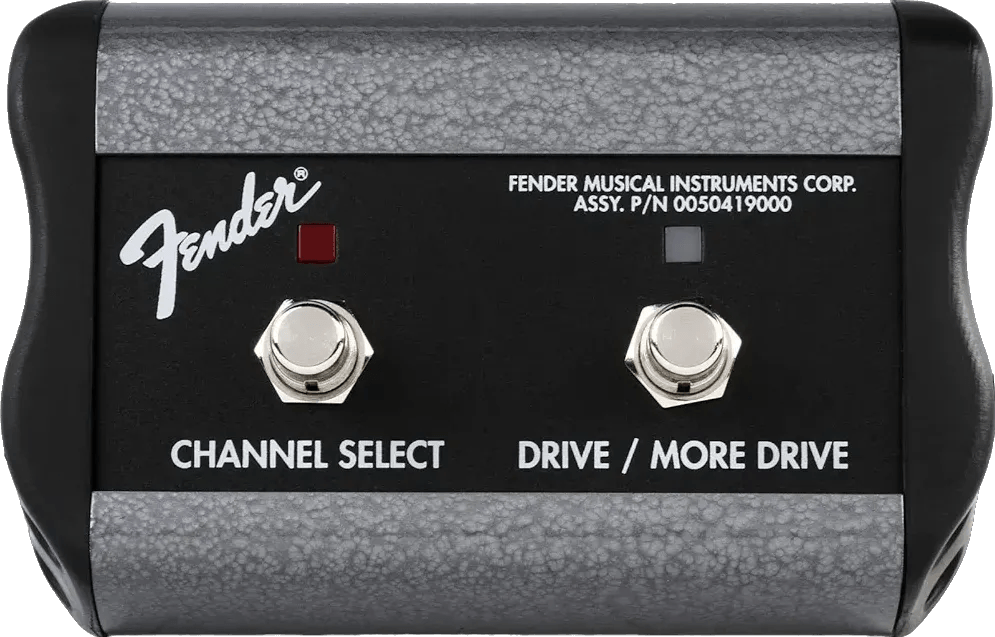 The Fender 2-Button 3-Function Footswitch is an official Fender accessory designed for channel and gain selection on compatible Fender amplifiers. This dual footswitch provides independent switches for channel selection and toggling between Drive and More Drive modes, supporting seamless switching during live or studio use. The unit connects to the amplifier via an included 1/4-inch jack cable and is engineered for use with models such as Fender Hot Rod Deluxe, Hot Rod DeVille, Deluxe 90, Stage 160, Stage 100, FM 212R, and FM 100 heads.
