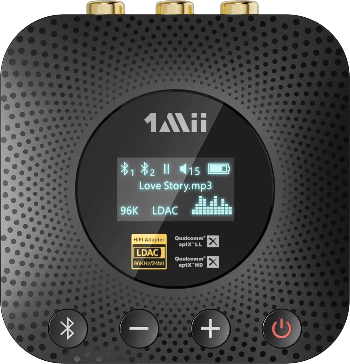 The 1Mii B06HD+ is a hi-res Bluetooth 5.1 music receiver designed for home stereo setups, providing wireless audio streaming with LDAC, aptX HD, and an integrated audiophile-grade DAC. This Bluetooth audio adapter enables high-quality music playback to AV receivers and amplifiers, and features an OLED display for clear visual feedback and onboard volume control. The receiver supports multiple high-resolution audio codecs, ensuring low latency and high-fidelity streaming for home audio systems.