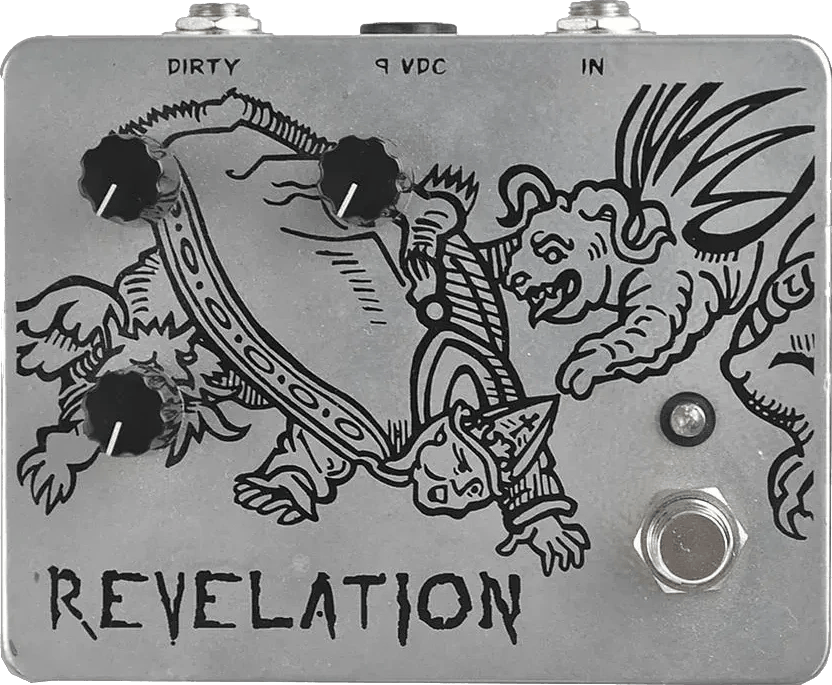 The Revelation is an overdrive effects pedal designed to function as a high-headroom preamp boost, offering a wide range of gain and tone-shaping capabilities. It features three control knobs: Pre Gain for setting the overall input gain level, Gain for dialing in the desired amount of overdrive or distortion, and Volume for managing output level and driving amplifiers with added intensity. The SuperLead variant delivers a mid-forward, aggressive voicing with enhanced saturation, while the SuperBass version is optimized for a rounder, thicker sound and is compatible with bass instruments. Both versions allow users to increase the harmonic content and volume of their signal without changing its core tonal character.