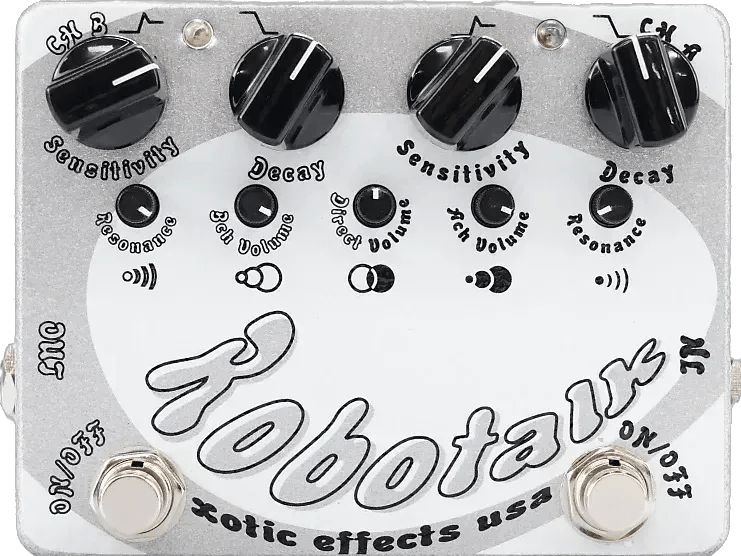 The Xotic Robotalk 2 is a dual-channel envelope filter effects pedal designed to deliver a wide range of filter tones. This pedal provides two separate envelope filter channels, with each channel offering independent controls for sensitivity, resonance, and decay. Its compact enclosure houses updated circuitry while maintaining functions inspired by vintage '70s filter effects.