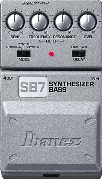 The Ibanez SB7 Synth Bass pedal is a bass effects pedal designed to generate synth bass tones by directly processing the input signal, rather than using pitch detection or triggering a separate synthesizer. This approach eliminates tracking latency and allows both single notes and chords to be played without delay.