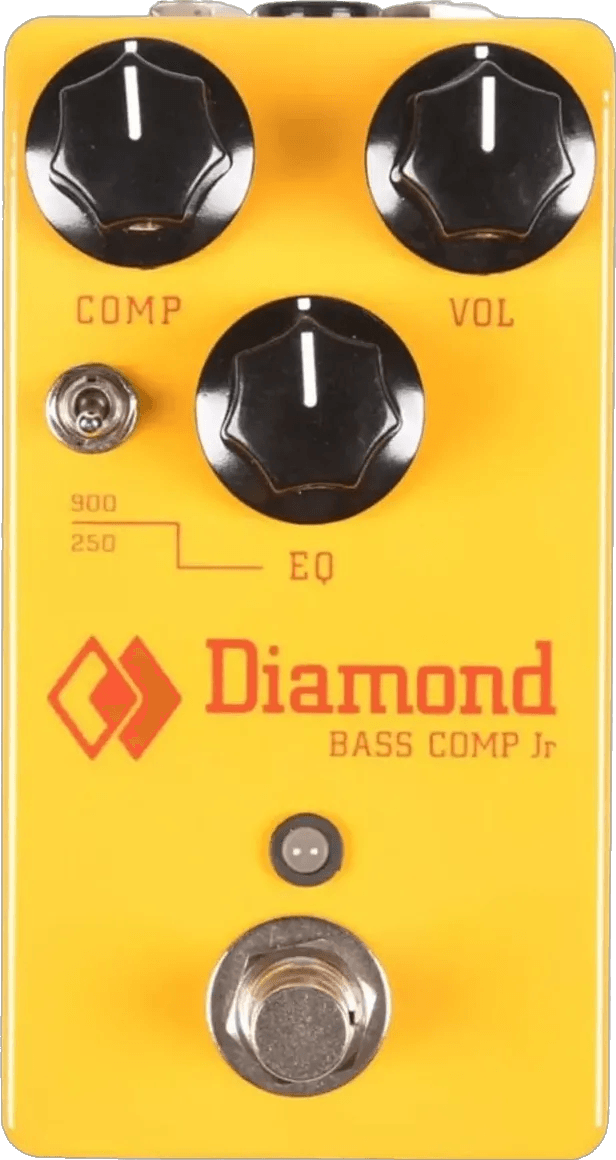 The Diamond Pedals Bass Comp Jr is an optical compressor effects pedal designed for dynamic control and tonal shaping of bass instruments. This compact compressor offers classic Diamond compression with a streamlined interface, including a tilt EQ for adjustable tone shaping. The control set features compression, volume, and tilt EQ knobs. Connectivity options include standard input and output jacks and a true bypass switch to maintain signal integrity when the pedal is disengaged. The Bass Comp Jr is engineered specifically for bass compatibility.