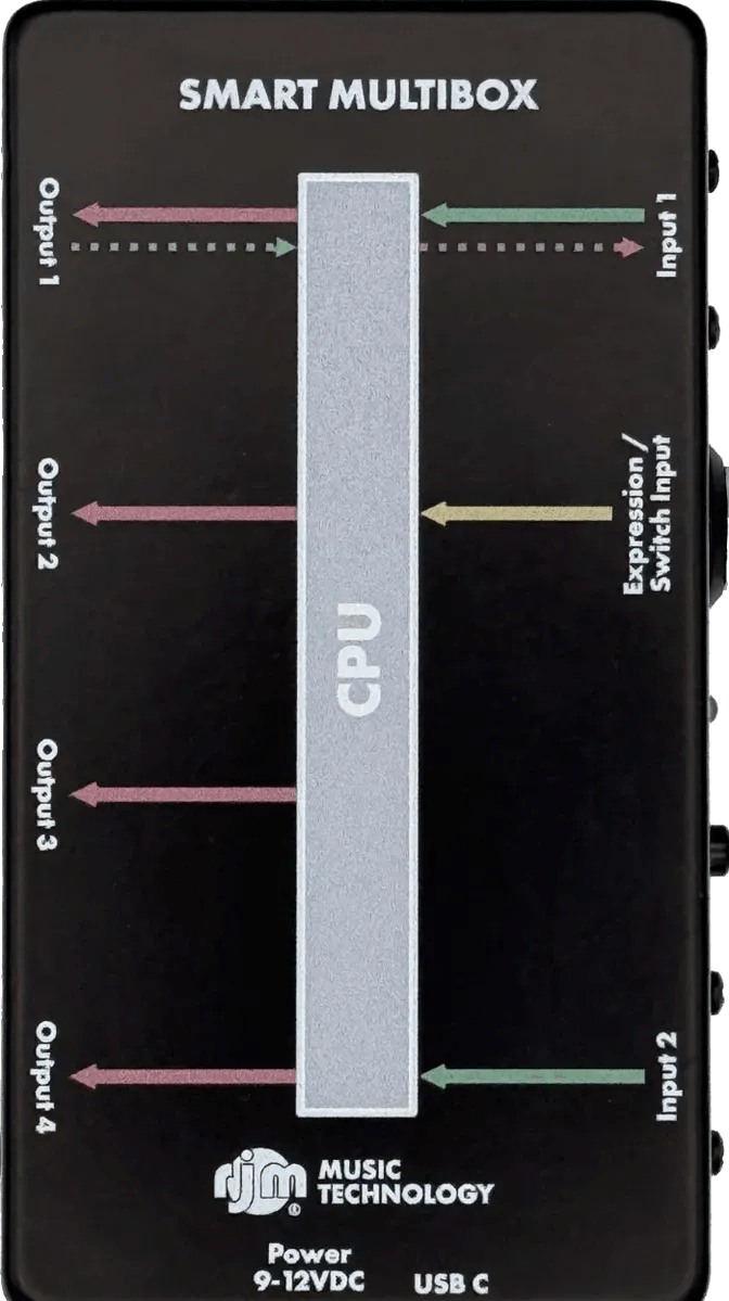 The Smart Multibox is a programmable MIDI interface designed for flexible MIDI routing and processing. This MIDI utility features 2 MIDI inputs, 4 MIDI outputs, and USB-C connectivity, managed by an integrated CPU capable of running custom scripts for MIDI message translation and routing. Operating modes include Merge/Thru for combining or distributing MIDI signals, USB MIDI interface for integration with computer-based MIDI applications, and Script Mode, which supports user-created MicroPython scripts for advanced routing logic. Additional connectivity includes a TRS input compatible with expression pedals or external switches, and Input 1/Output 1 support bidirectional MIDI communication and phantom power for compatible devices.