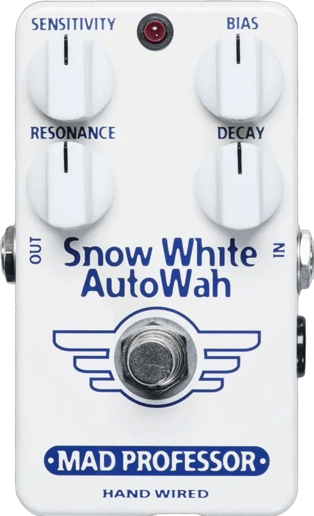 The Mad Professor Snow White Autowah is an envelope filter pedal derived from the 1991 BJF rack mount remote wah circuit. Designed for fast response and precise tracking, this auto wah pedal provides four adjustable controls for extensive effect shaping. The Snow White Autowah includes a decay knob to set the filter frequency fall speed, offering flexibility between rapid wah effects and a slower, classic envelope filter style. This Mad Professor effects pedal is compatible with both guitar and bass instruments, allowing players to tailor the response and tonal characteristics to their needs.
