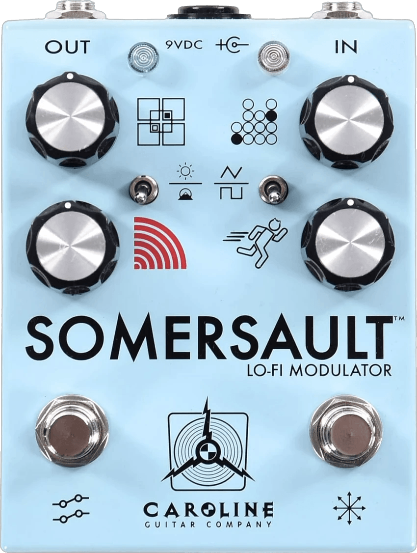 The SOMERSAULT™ is a stereo modulation effects pedal designed for a broad spectrum of modulation sounds, including vibrato, chorus, and doubling. Utilizing a hybrid signal path, the pedal features a digital chip for processing the delayed wet signal, while the input gain, dry path, LFO section, control set, and output mixer remain fully analog. This analog-digital combination enables a diverse range of effects, from subtle vibrato textures and 1980s-inspired choruses to more experimental modulation.