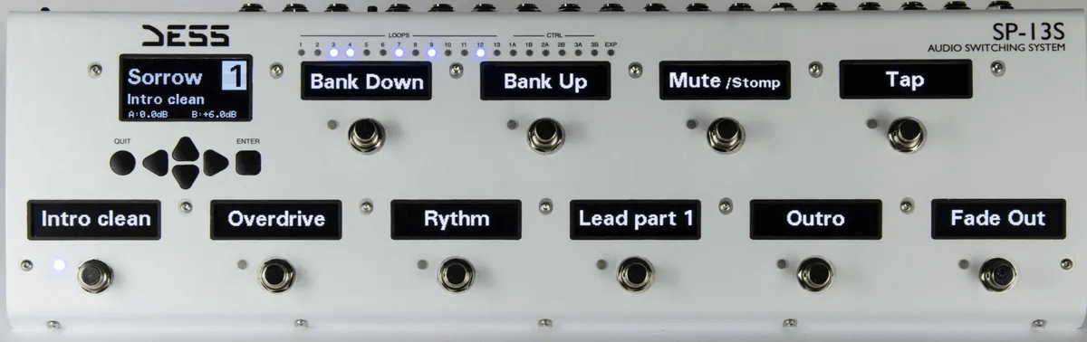 The SP-9 is a programmable effects pedal switcher designed to control and manage up to nine mono or stereo effects pedals in a single setup. With a single footswitch press, users can activate or bypass individual pedals, switch amplifier channels, transmit MIDI commands, and control overall volume. The SP-9’s interface supports the integration of a wide range of pedal formats and offers flexible signal routing for complex pedalboard arrangements.