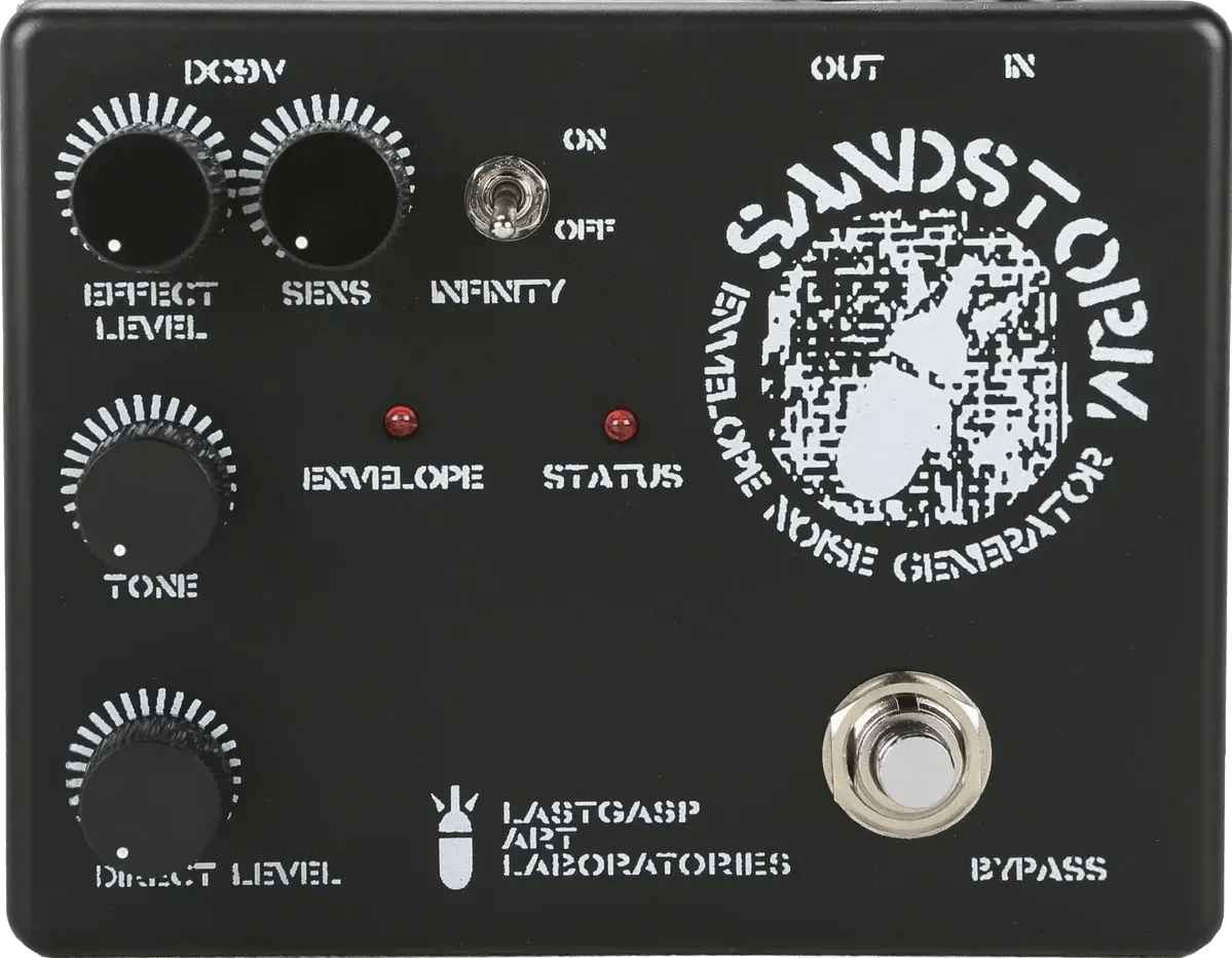 The SANDSTORM Envelope Noise Generator pedal is a white noise effects pedal designed to generate envelope-followed noise based on the dynamics of an input signal. The output level of the white noise rises in response to increased signal velocity and remains silent when no signal is present. Independent controls for the effect (white noise) and direct (dry) level provide flexible mixing options. An INFINITY switch allows for continuous white noise output, regardless of input.