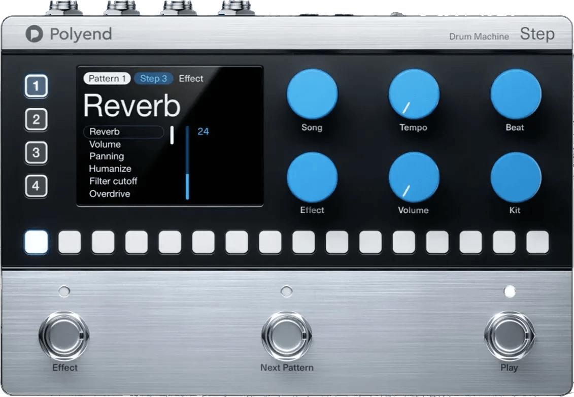 - Programmable drum machine pedal with step sequencing