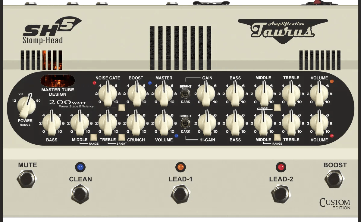 The Taurus SH6CE is a fully analog, three-channel guitar amplifier pedal designed for flexible tone shaping. Featuring classic clean, vintage-inspired distortion, and modern high-gain channels, the Taurus SH6CE offers a wide range of sound textures. The unit utilizes Taurus’s proprietary Master Tube Design technology for all-analog signal processing, with no digital modeling. Controls allow users to easily switch between channels and tweak settings for dynamic tonal responses. This amp pedal is built for straightforward operation and comprehensive connectivity options.