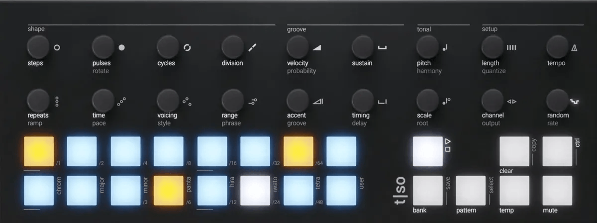 The T-1 is a generative MIDI sequencer designed for real-time music creation and on-the-fly pattern variation. This sequencer features algorithmic pattern generation and offers immediate control for live performance or studio sessions. Users can interact directly with T-1’s musical algorithms, utilizing hands-on macro controls to develop, mutate, and evolve musical ideas. The T-1 supports deep parameter customization, polyrhythmic sequencing, and advanced randomization functions, opening up a range of rhythmic and melodic possibilities. MIDI connectivity provides integration with a variety of hardware and software instruments.