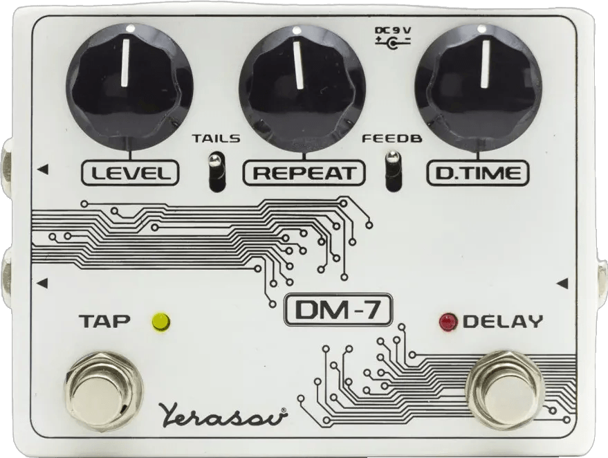 The Yerasov Tap Delay DM-7 is a digital delay effects pedal offering a broad spectrum of delay times, from quick, reverb-style echoes to extended phrase repeats. Built on the foundation of the DM-6, this delay pedal features straightforward controls and essential functionality, allowing quick and precise adjustment of delay parameters. With its digital signal path and practical interface, the DM-7 enables clear sound replication and flexible performance options for musicians seeking reliable delay processing.