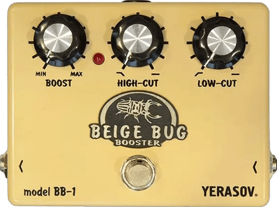 The Yerasov BB-1 Beige Big Booster is a clean boost effects pedal designed to amplify your signal by up to 30dB. This boost pedal features high and low frequency filters for precise tonal shaping, allowing adjustment of both ends of your frequency spectrum. The BB-1 incorporates true bypass switching, maintaining signal integrity when not engaged, and it can also function as a signal buffer. Engineered for low noise operation, the Yerasov BB-1 provides transparent gain while preserving the character of your instrument.